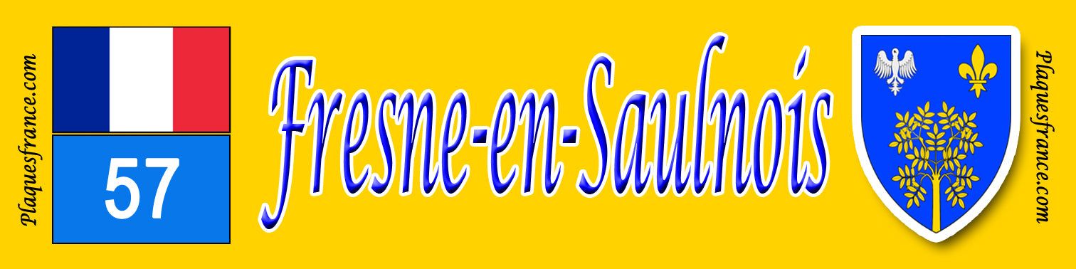 Plaque métal décorative 10 x 40 cm fond jaune Fresnes en Saulnois, canton du Saulnois, Moselle 57