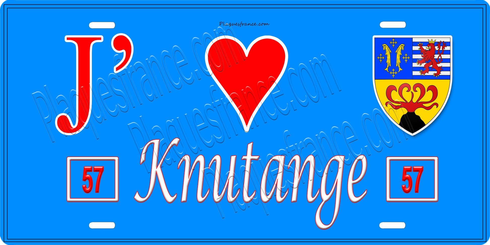Plaque métal décorative 15 x 30 cm bleu 57 J' ❤️ Knutange Canton de Algrange Moselle 57