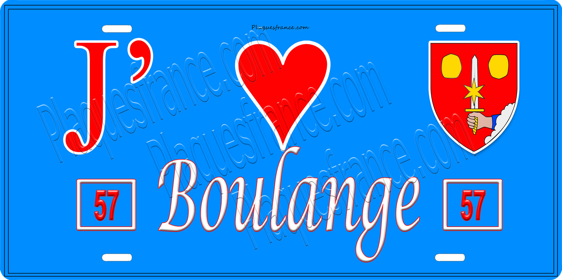 Plaque métal décorative 15 x 30 cm bleu J' ❤️ Boulange Canton de Algrange Moselle 57