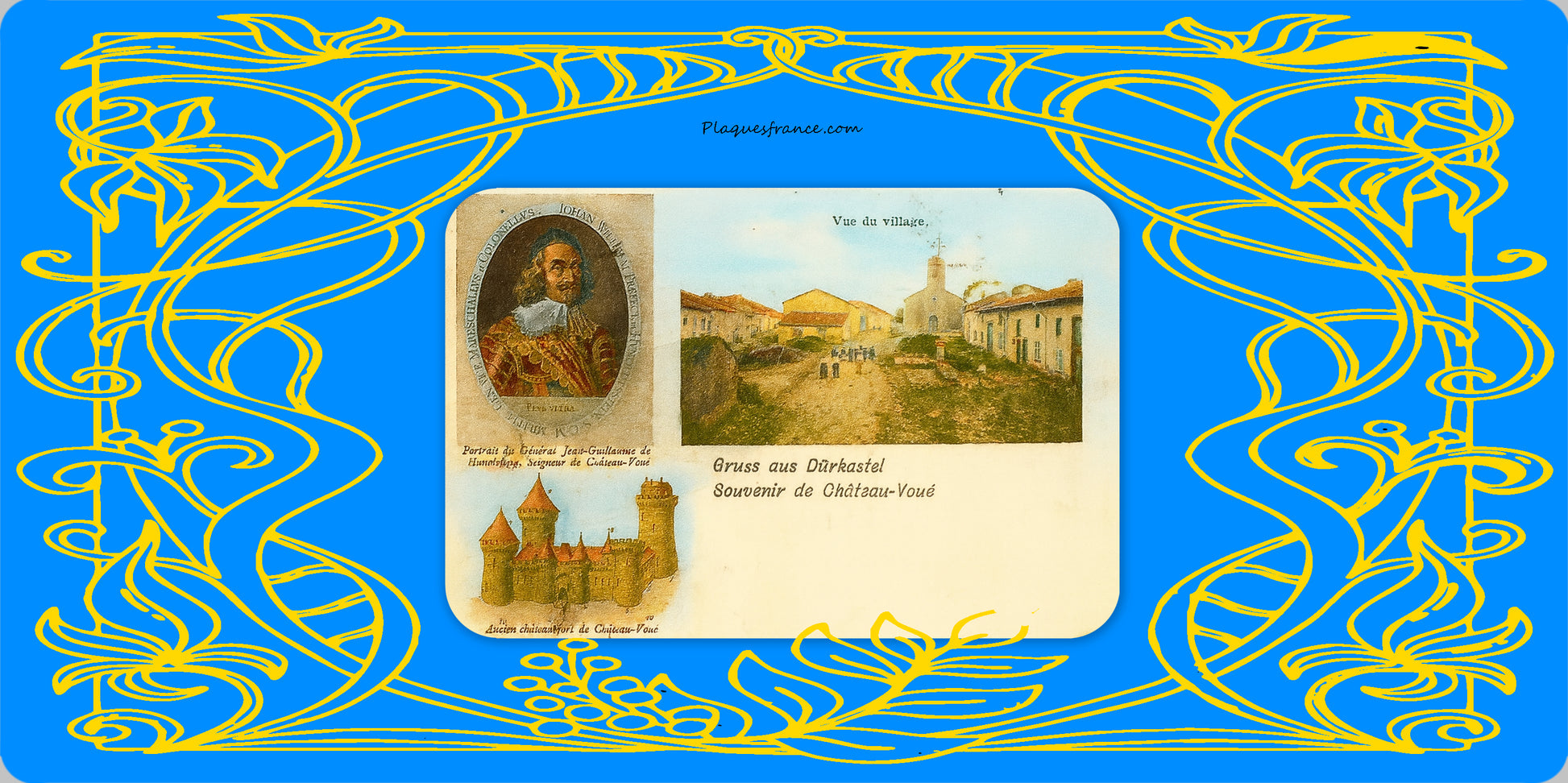 Plaque métal décorative 15 x 30 cm carte postale ancienne : Château-Voué canton du Saulnois Moselle 57