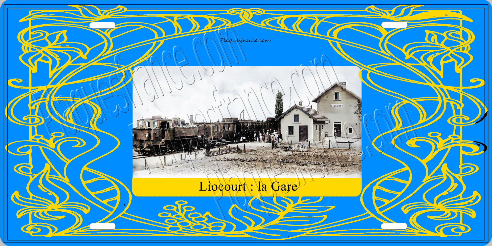 Plaque métal décorative 15 x 30 cm carte postale ancienne : la Gare de Liocourt, canton du Saulnois Moselle 57