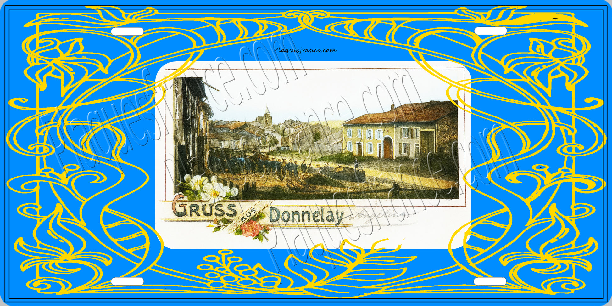 Plaque métal décorative 15 x 30 cm carte postale ancienne : Rue principale de Donnelay, canton du Saulnois Moselle 57