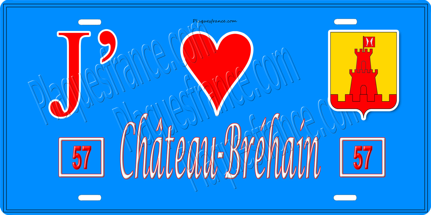 Plaque métal décorative 15 x 30 cm fond bleu 57 J' ❤️ Château Bréhain, canton du Saulnois Moselle 57