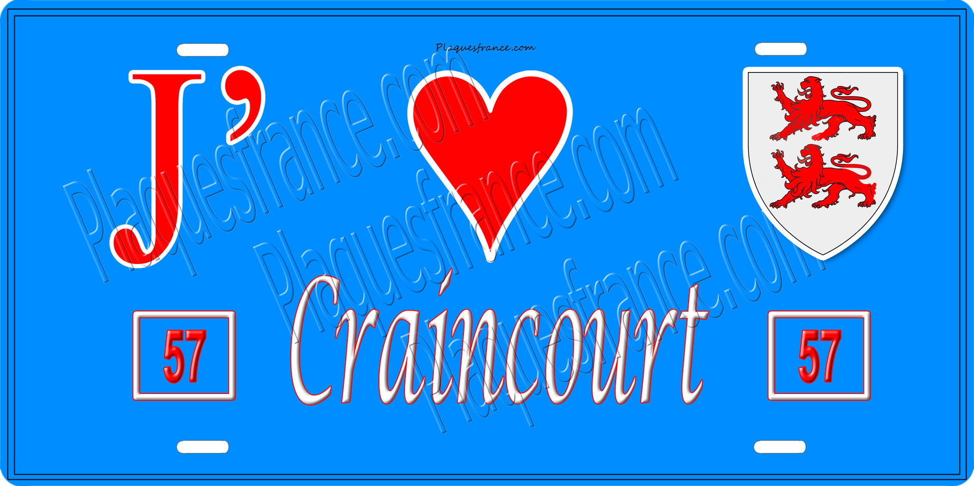 Plaque métal décorative 15 x 30 cm fond bleu 57 J' ❤️ Craincourt, canton du Saulnois Moselle 57