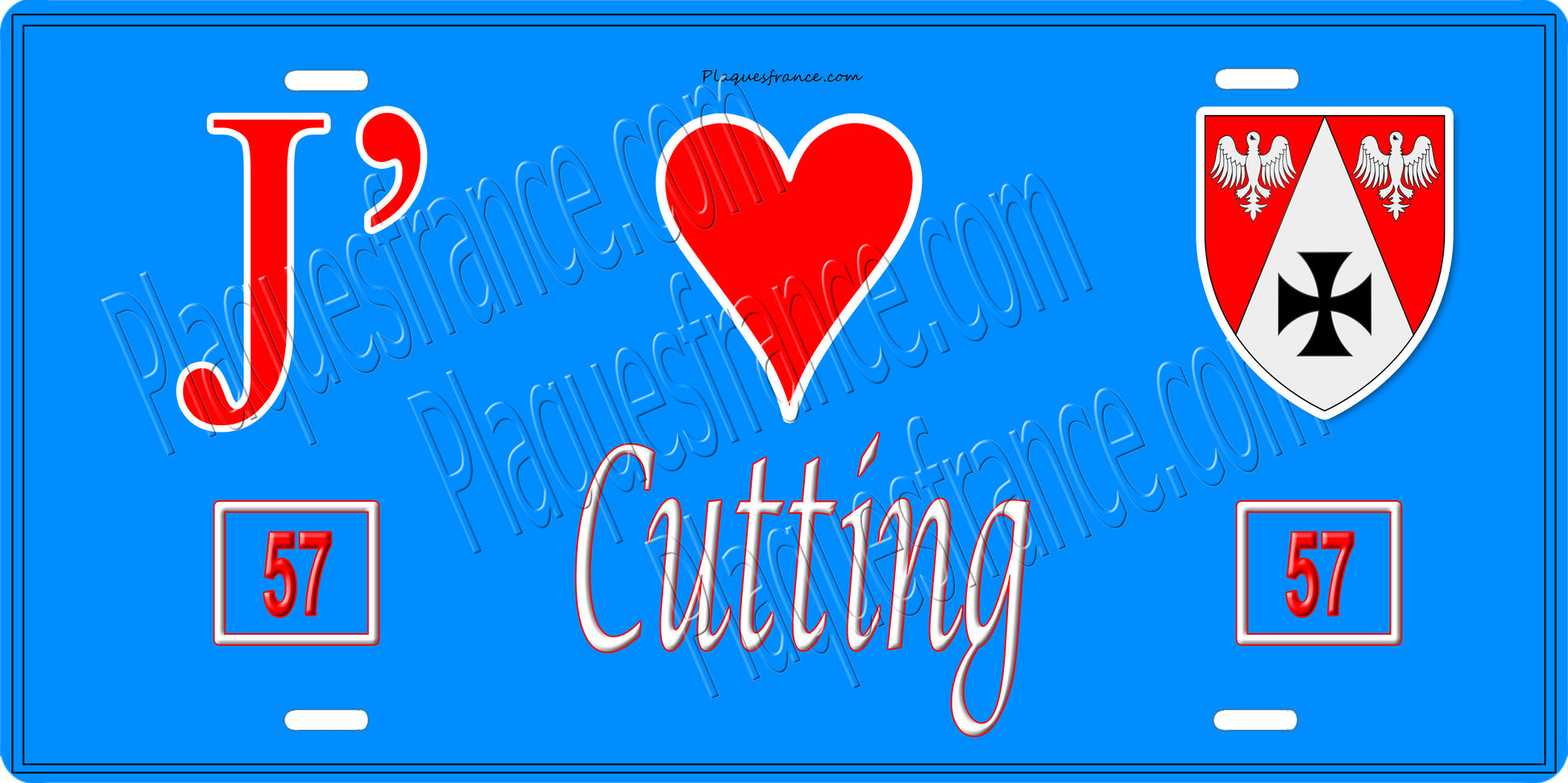 Plaque métal décorative 15 x 30 cm fond bleu 57 J' ❤️ Cutting, canton du Saulnois Moselle 57