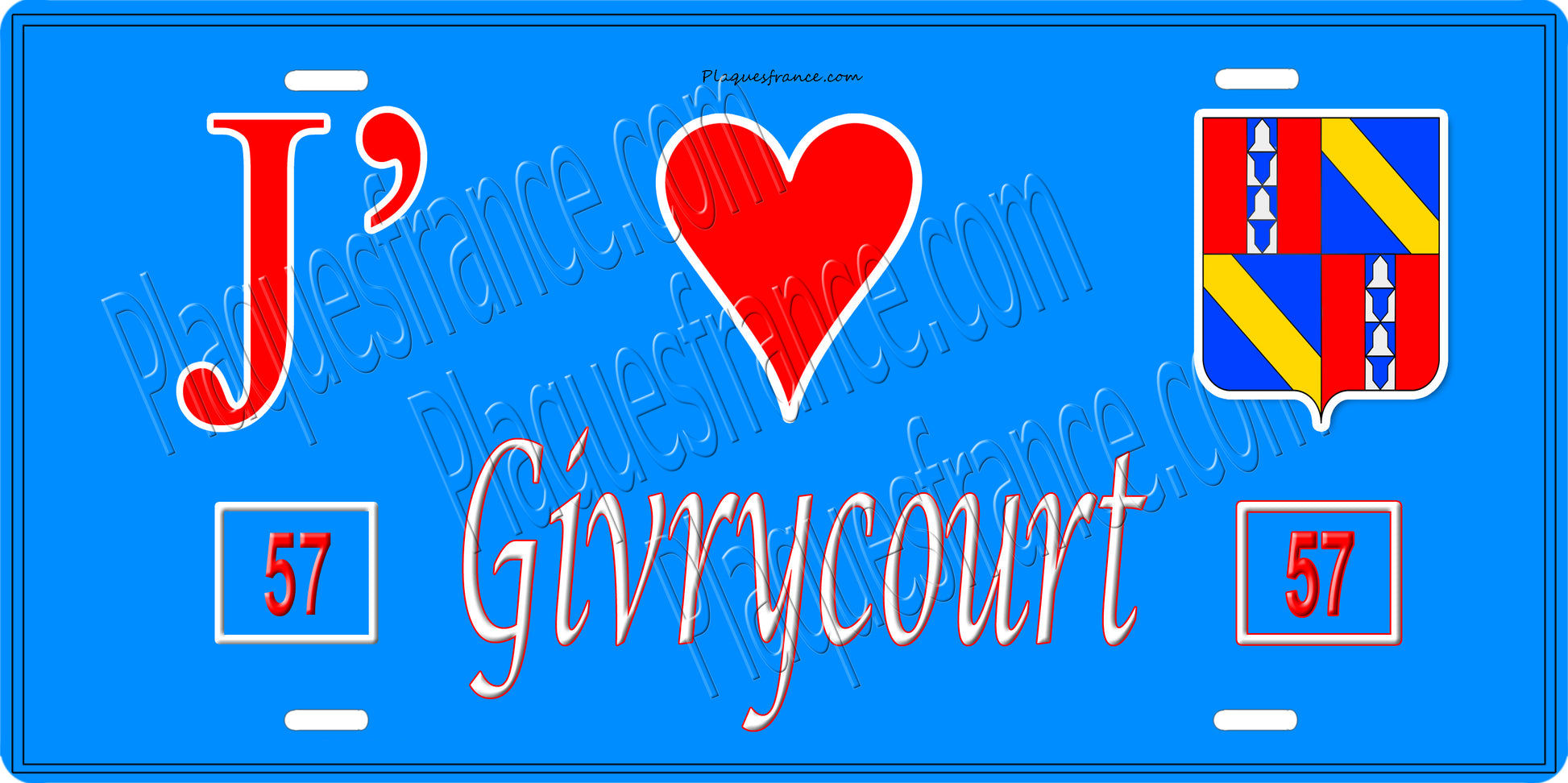 Plaque métal décorative 15 x 30 cm fond bleu 57 J' ❤️ Givrycourt, canton du Saulnois Moselle 57