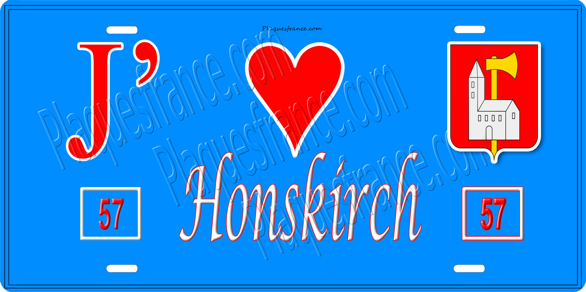 Plaque métal décorative 15 x 30 cm fond bleu 57 J' ❤️ Honskirch, canton du Saulnois Moselle 57