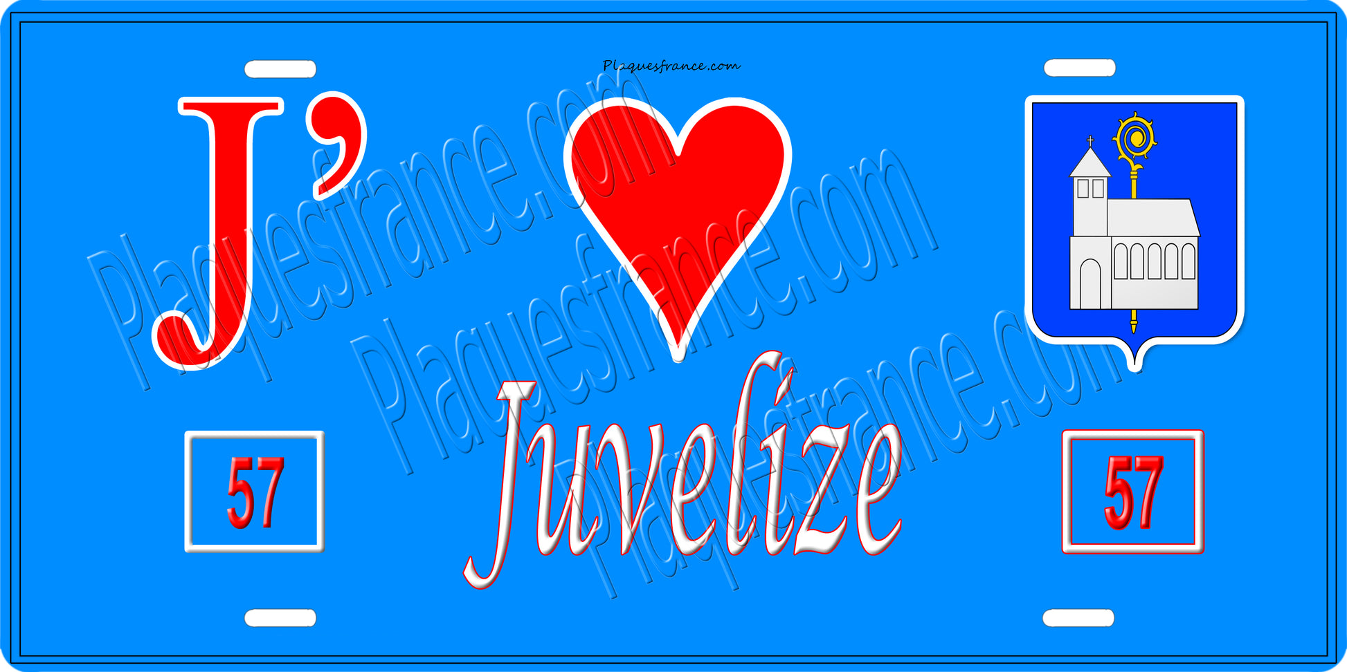 Plaque métal décorative 15 x 30 cm fond bleu 57 J' ❤️Juvelize, canton du Saulnois Moselle 57