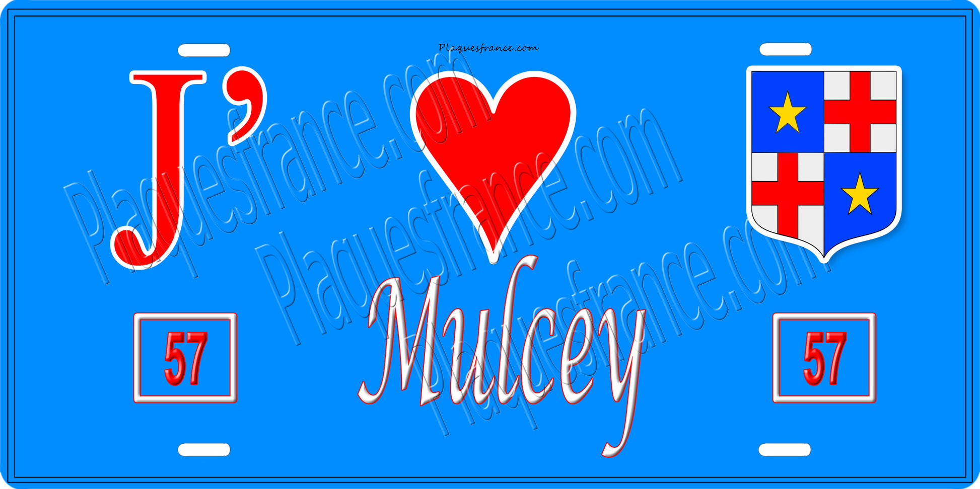 Plaque métal décorative 15 x 30 cm fond bleu 57 J' ❤️Mulcey, canton du Saulnois Moselle 57