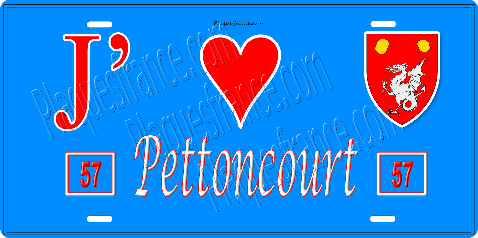 Plaque métal décorative 15 x 30 cm fond bleu 57 J' ❤️Pettoncourt, canton du Saulnois Moselle 57