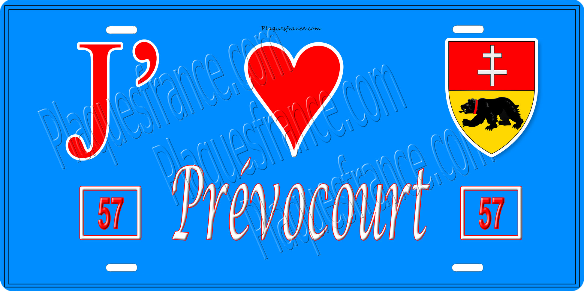 Plaque métal décorative 15 x 30 cm fond bleu 57 J' ❤️Prévocourt, canton du Saulnois Moselle 57