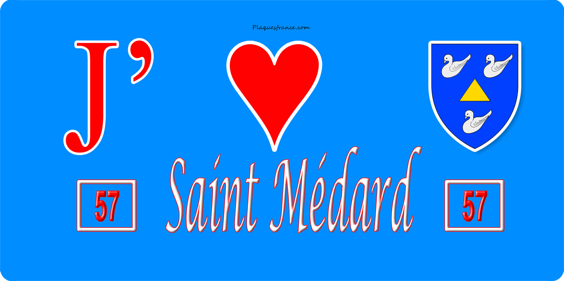 Plaque métal décorative 15 x 30 cm fond bleu 57 J' ❤️Saint Médard , canton du Saulnois Moselle 57