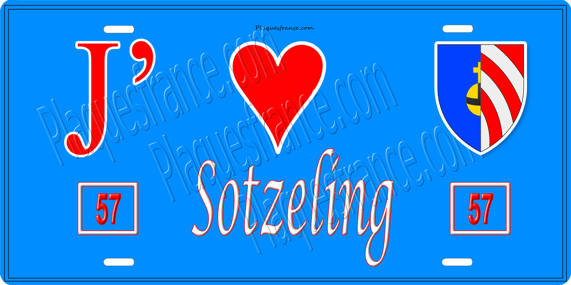 Plaque métal décorative 15 x 30 cm fond bleu 57 J' ❤️Sotzeling , canton du Saulnois Moselle 57