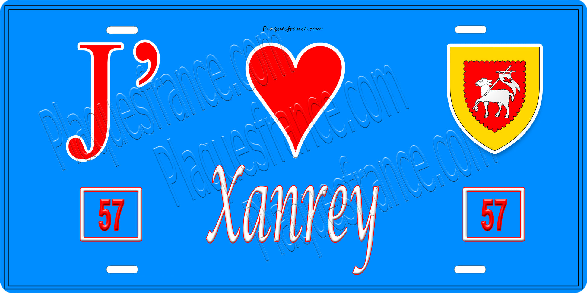 Plaque métal décorative 15 x 30 cm fond bleu 57 J' ❤️Xanrey, canton du Saulnois Moselle 57