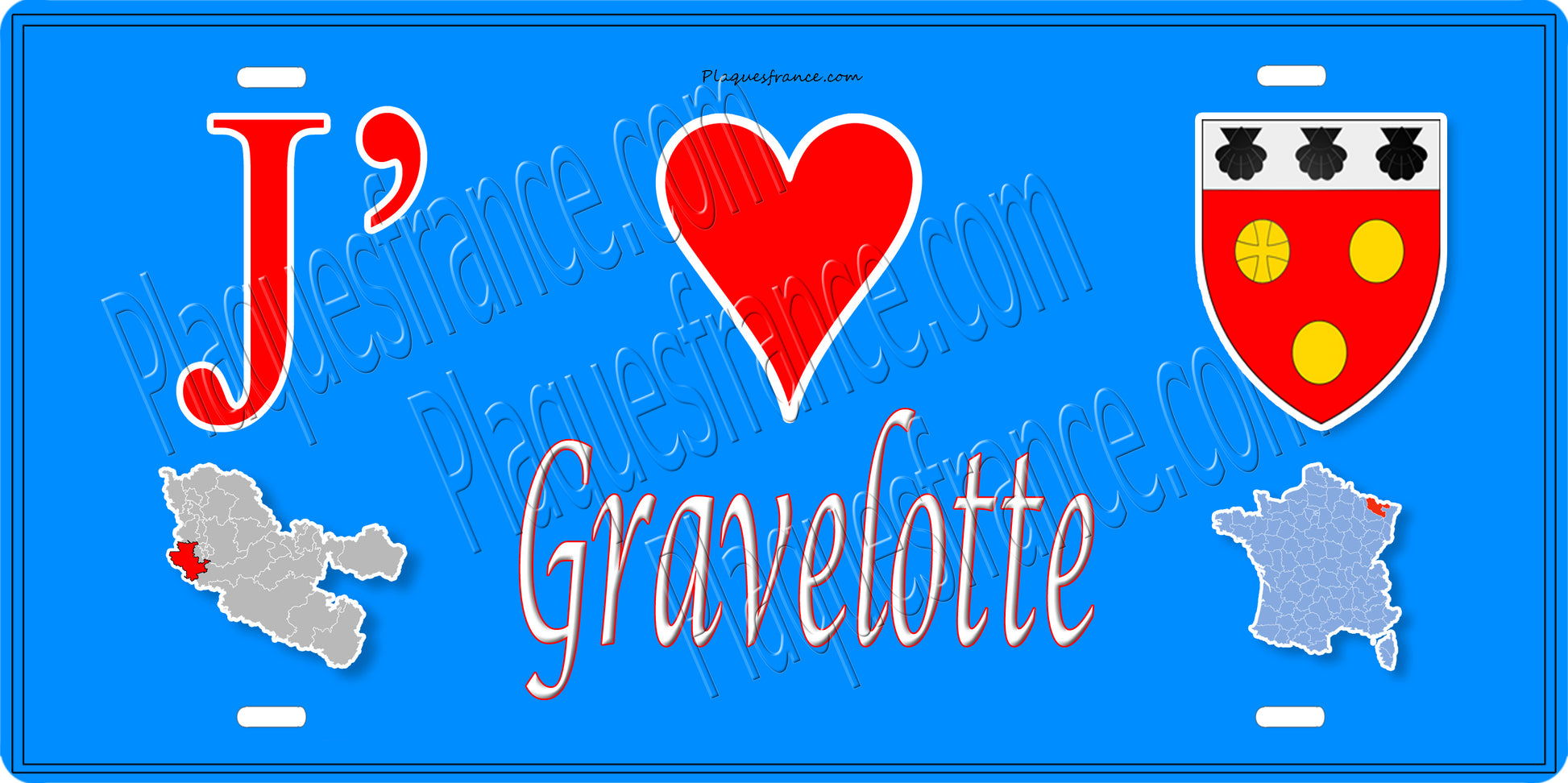 Plaque métal décorative 15 x 30 cm fond bleu carte J'❤️ Gravelotte, Moselle 57
