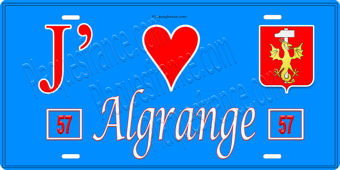 Plaque métal décorative 15 x 30 cm fond bleu J' ❤️ Algrange Canton de Algrange Moselle 57