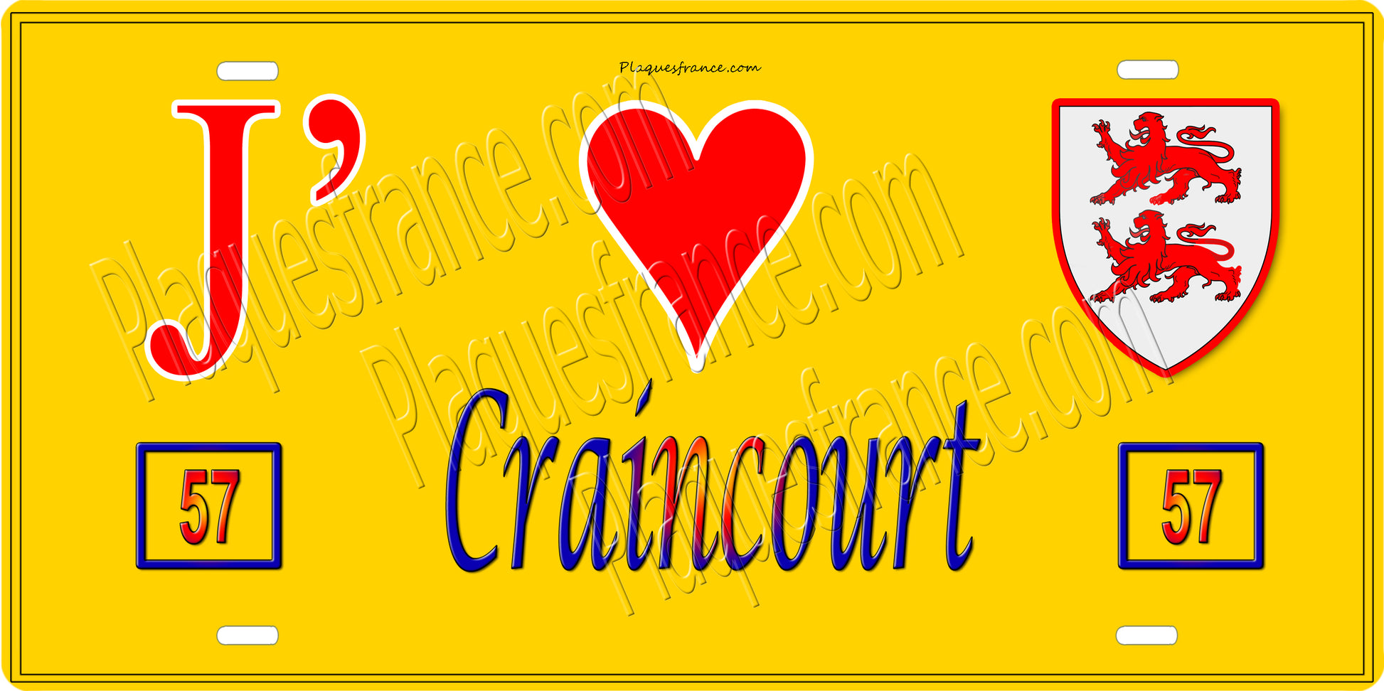 Plaque métal décorative 15 x 30 cm fond jaune 57 J' ❤️ Craincourt, canton du Saulnois Moselle 57