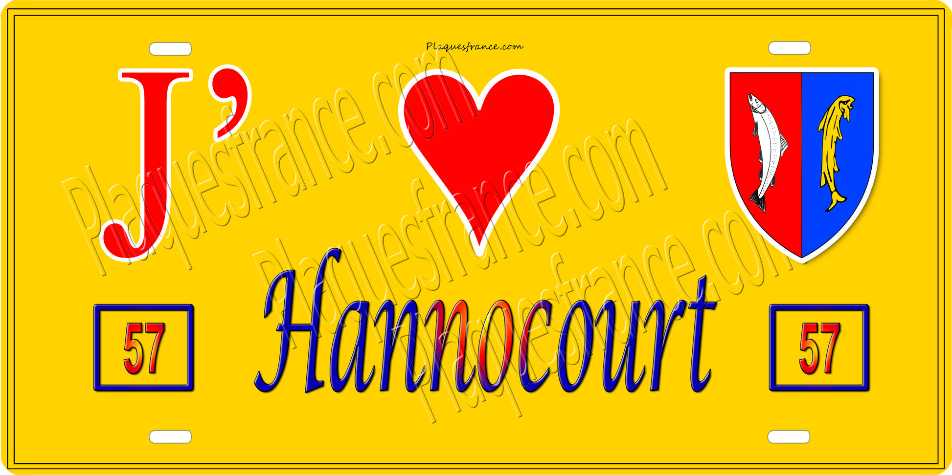 Plaque métal décorative 15 x 30 cm fond jaune 57 J' ❤️ Hannocourt, canton du Saulnois Moselle 57