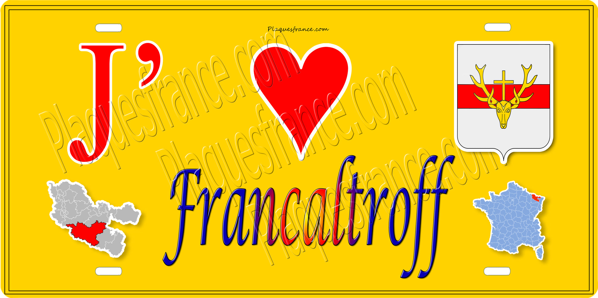 Plaque métal décorative 15 x 30 cm fond jaune carte J' ❤️ Francaltroff, canton du Saulnois Moselle 57