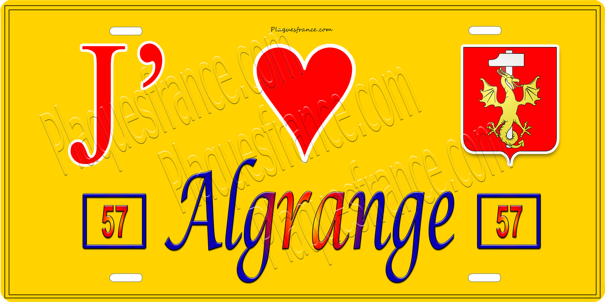 Plaque métal décorative 15 x 30 cm fond jaune J' ❤️ Algrange Canton de Algrange Moselle 57