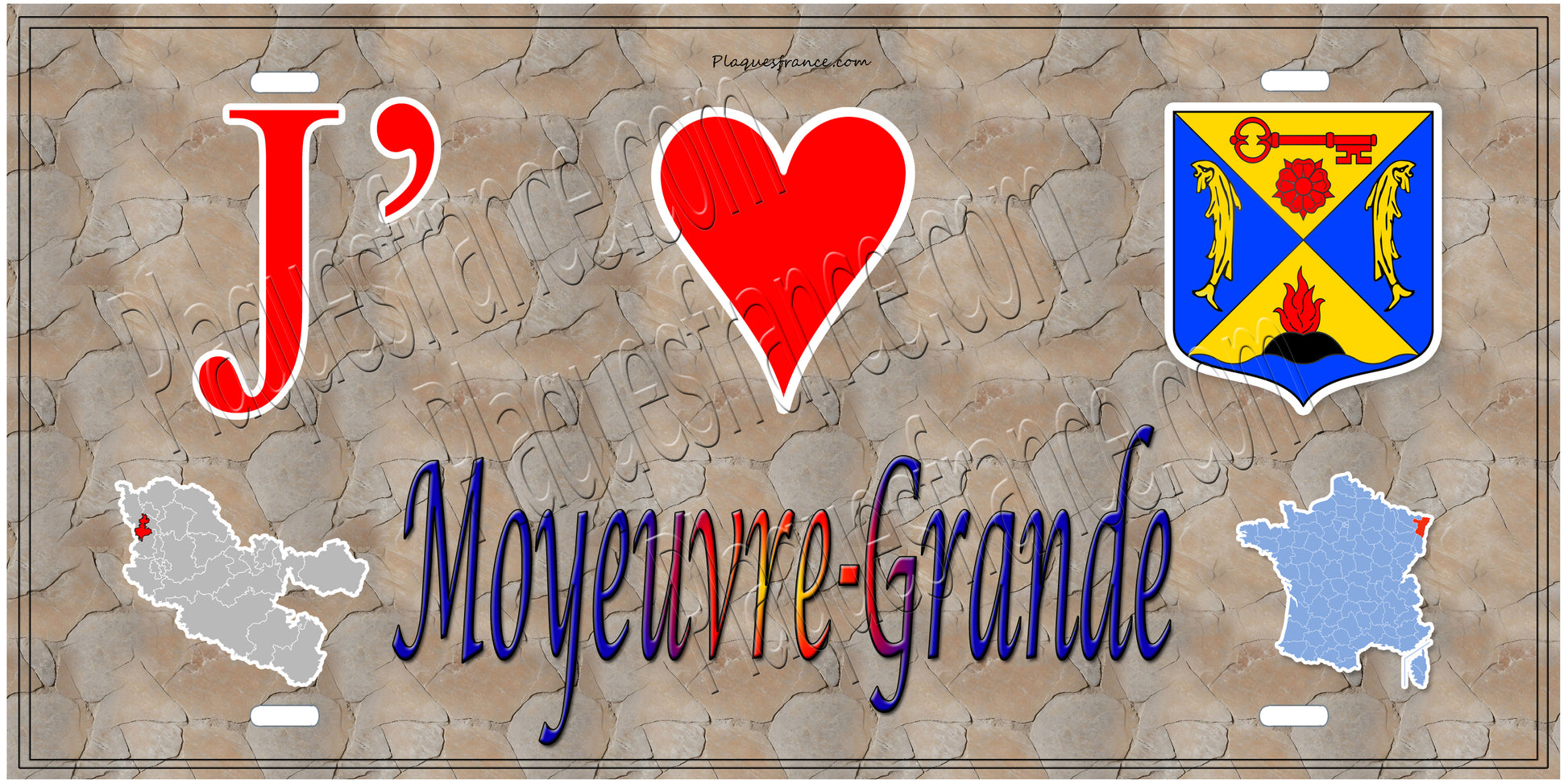 Plaque métal décorative 15 x 30 cm fond mur antique carte J' ❤️ Moyeuvre-Grande, canton Hayange Moselle 5714:366#Metal 15x30cm
