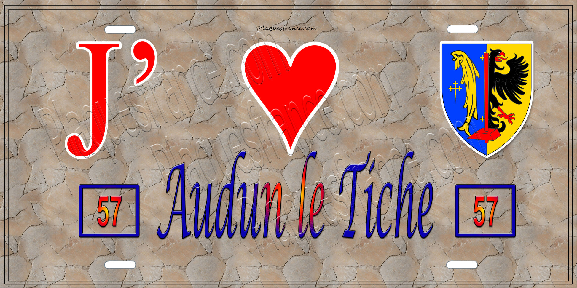 Plaque métal décorative 15 x 30 cm fond mur antique J' ❤️ Audun le Tiche Canton de Algrange Moselle 57