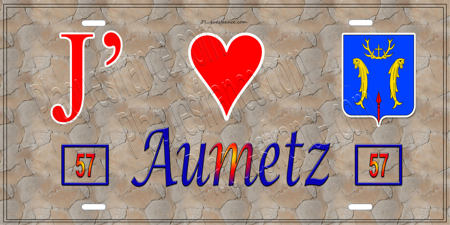 Plaque métal décorative 15 x 30 cm fond mur antique J' ❤️ Aumetz Canton de Algrange Moselle 57