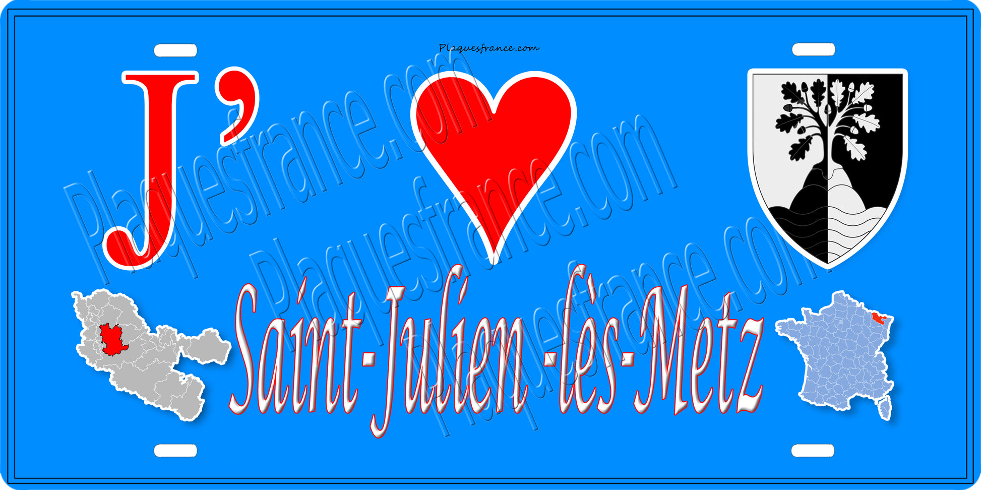 Plaque métal décorative 15 x 30 cm fond mur bleu carte J' ❤️Saint-Julien-lès-Metz, canton Le Pays Messin Moselle 57