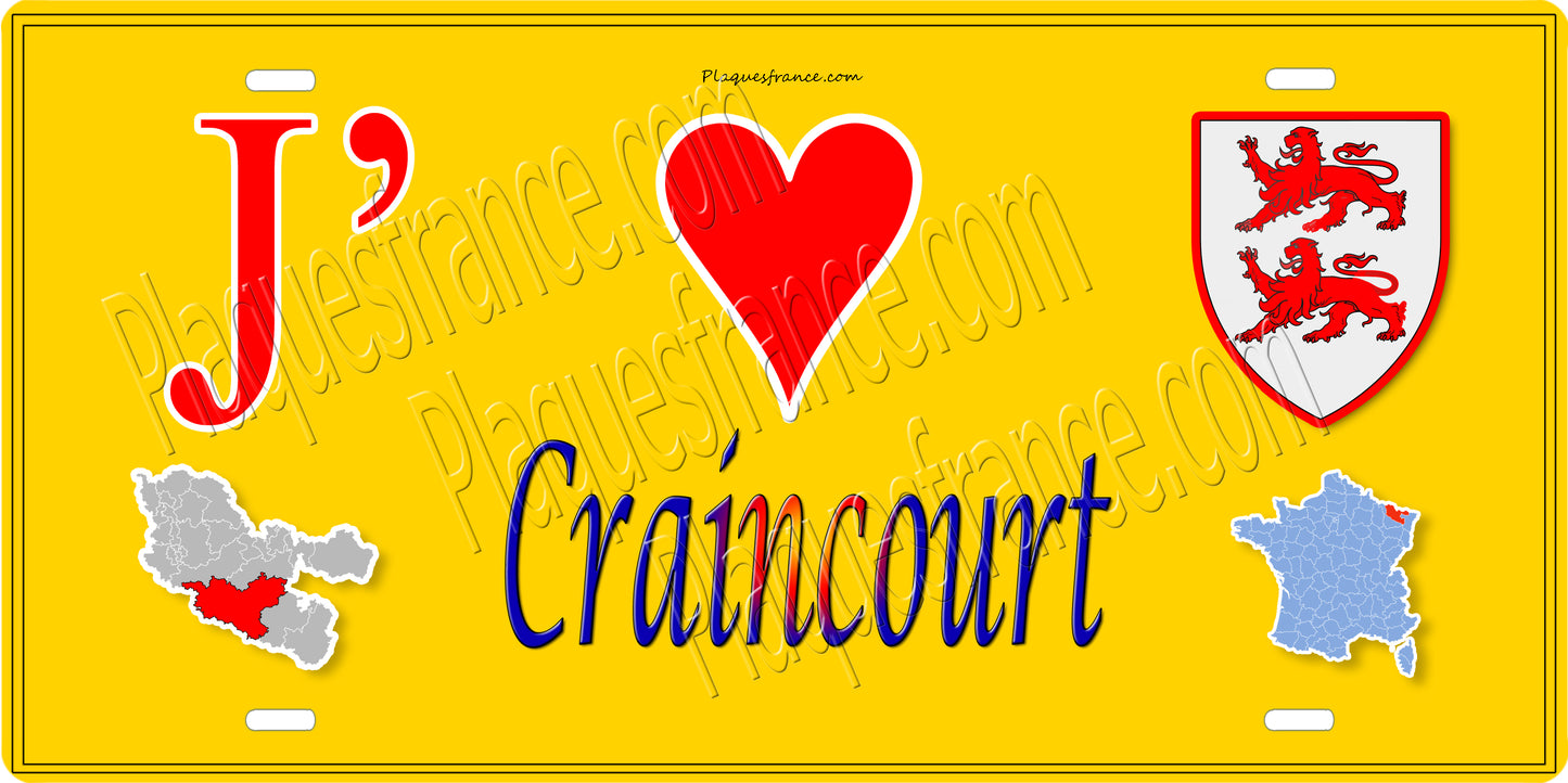 Plaque métal décorative 15 x 30 cm jaune carte J' ❤️ Craincourt, canton du Saulnois Moselle 57