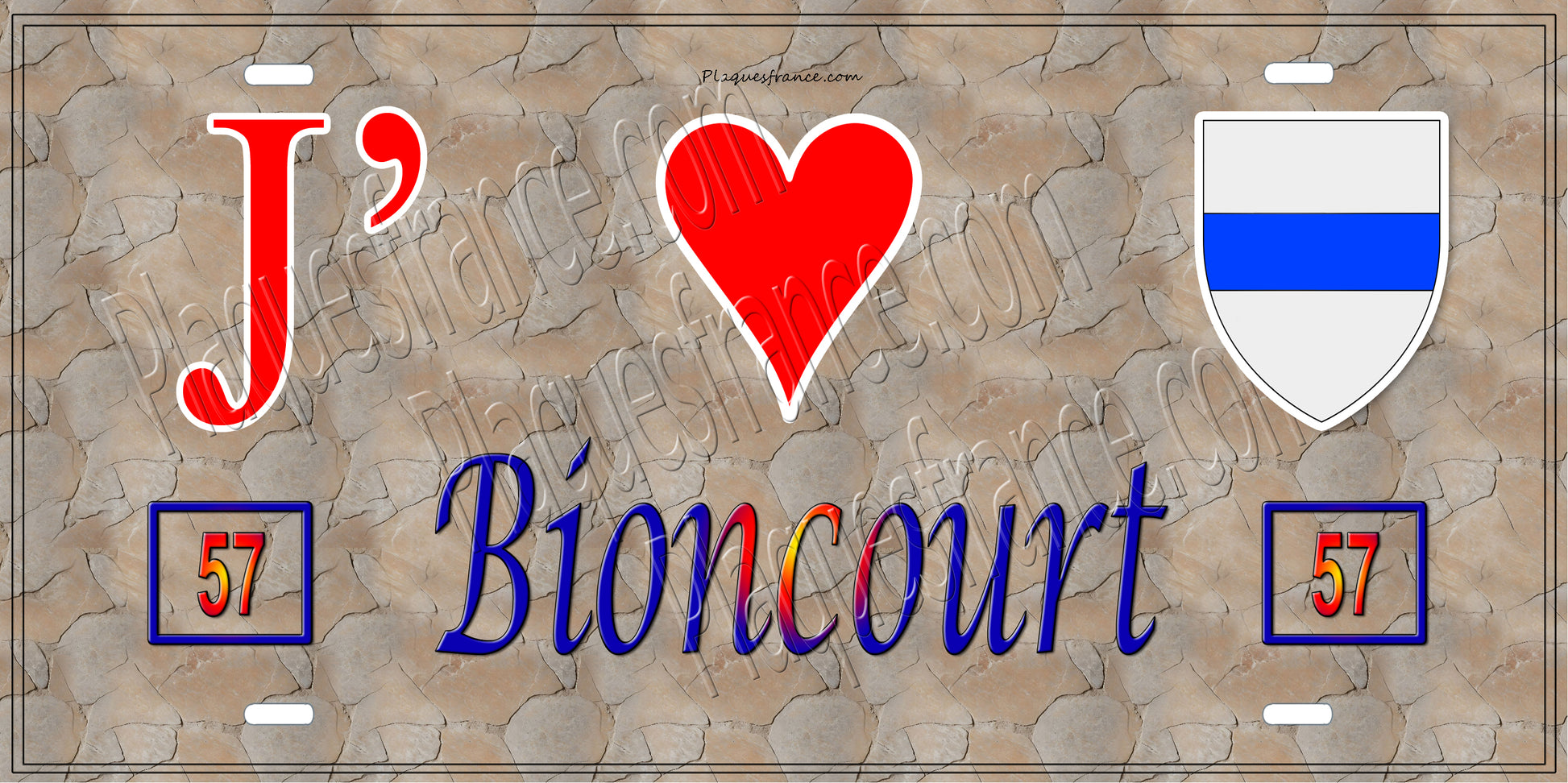 Plaque métal décorative 15 x 30 cm mur antique 57 J' ❤️ Bioncourt, canton du Saulnois Moselle 57