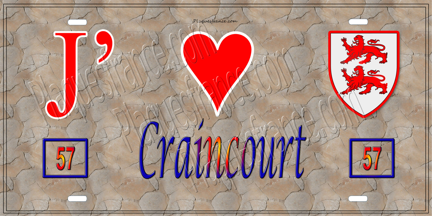 Plaque métal décorative 15 x 30 cm mur antique 57 J' ❤️ Craincourt, canton du Saulnois Moselle 57