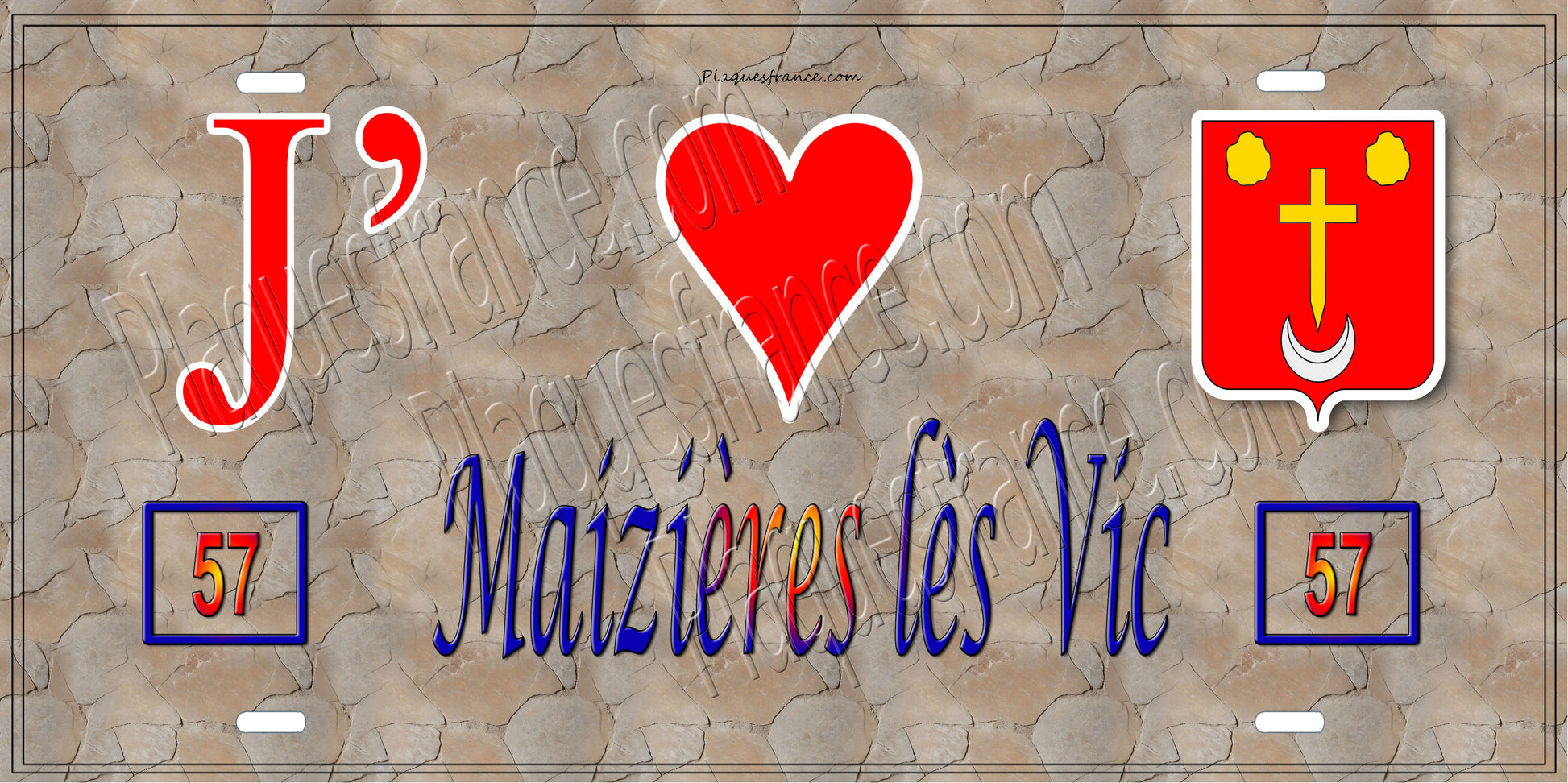 Plaque métal décorative 15 x 30 cm mur antique 57 J' ❤️ Maizières-lès-Vic, canton du Saulnois Moselle 57