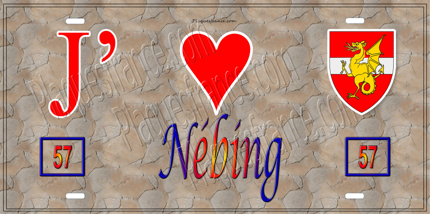 Plaque métal décorative 15 x 30 cm mur antique 57 J' ❤️ Nébing, canton du Saulnois Moselle 57