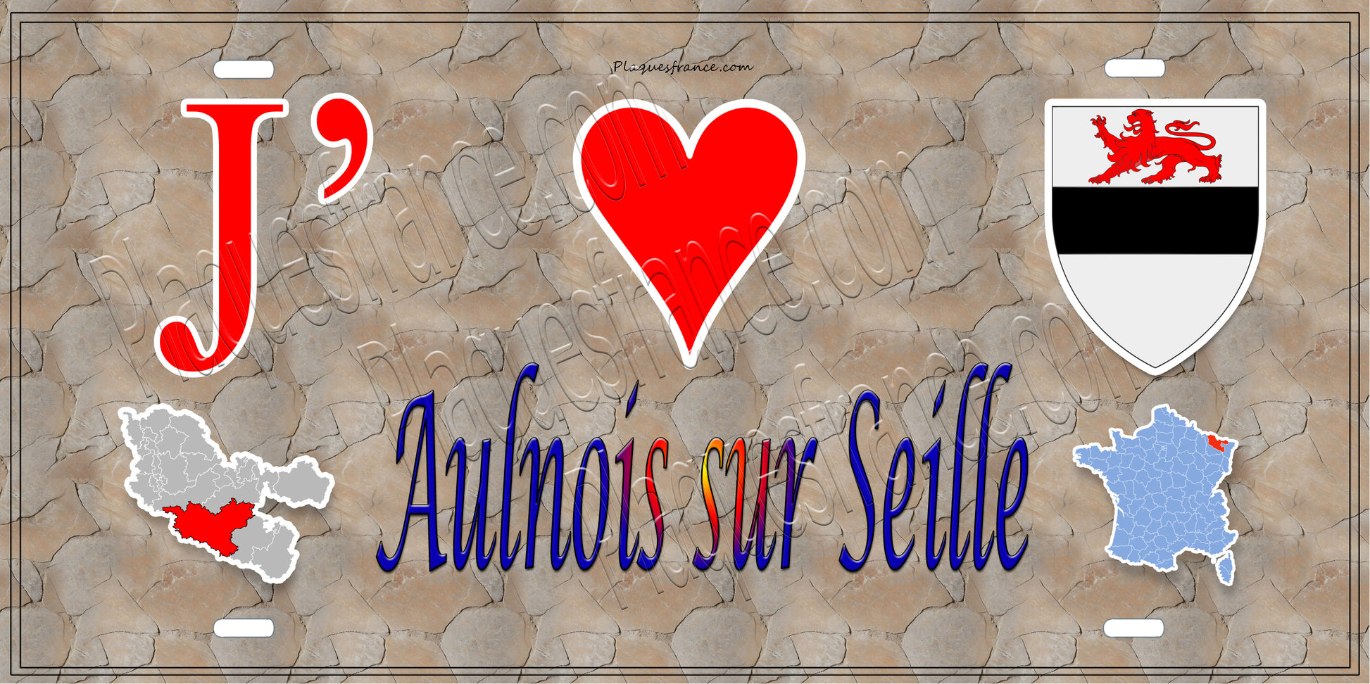 Plaque métal décorative 15 x 30 cm mur antique carte J' ❤️ Aulnois-sur-Seille, canton du Saulnois Moselle 57