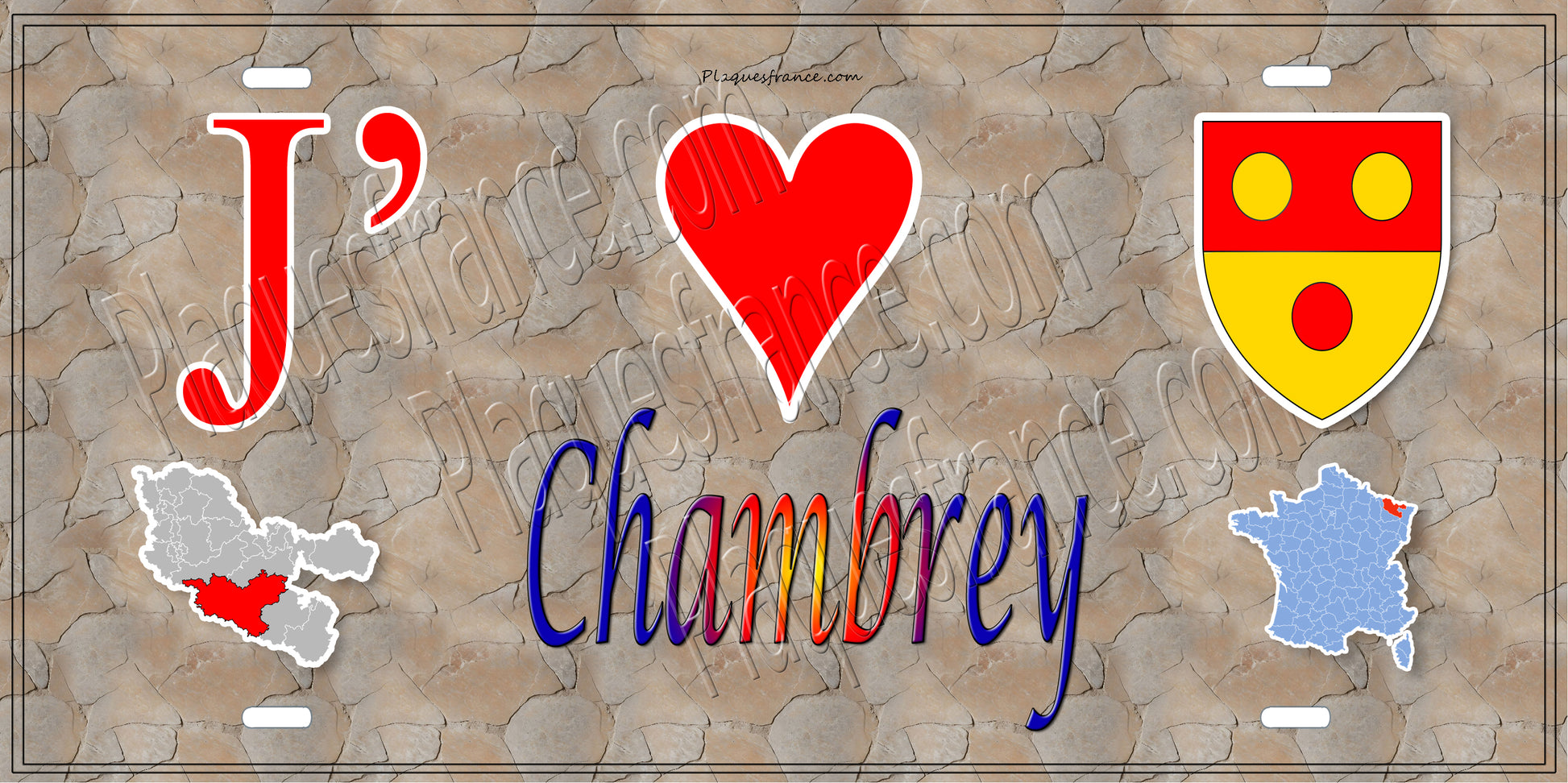 Plaque métal décorative 15 x 30 cm mur antique carte J' ❤️ Chambrey, canton du Saulnois Moselle 57