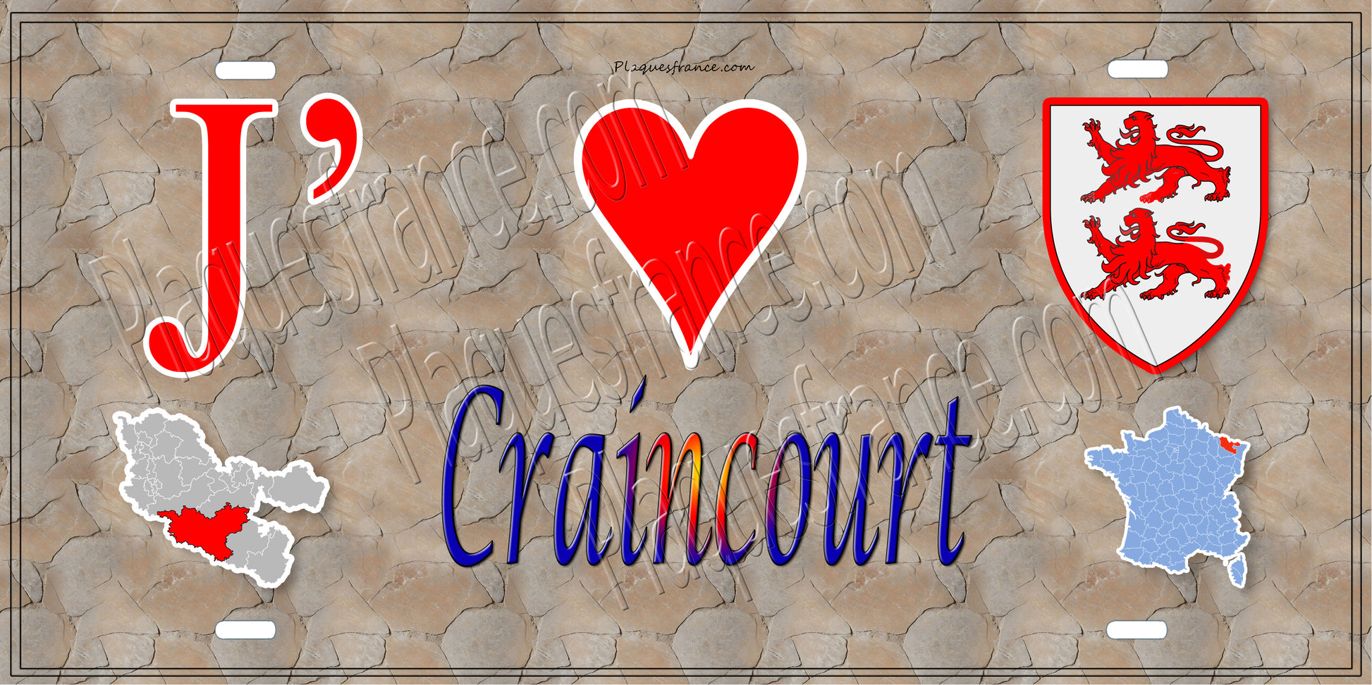 Plaque métal décorative 15 x 30 cm mur antique carte J' ❤️ Craincourt, canton du Saulnois Moselle 57