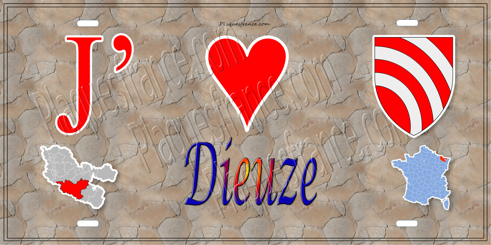 Plaque métal décorative 15 x 30 cm mur antique carte J' ❤️ Dieuze, canton du Saulnois Moselle 57