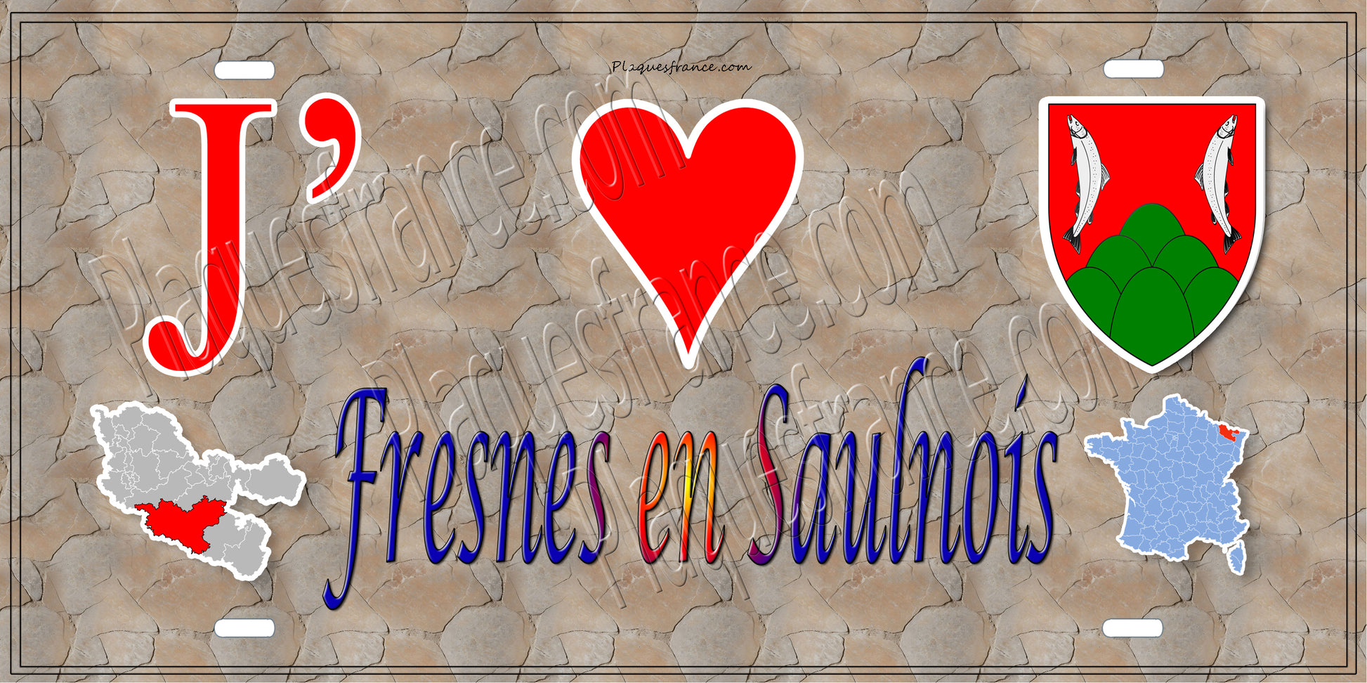 Plaque métal décorative 15 x 30 cm mur antique carte J' ❤️ Fresne en Saulnois, canton du Saulnois Moselle 57