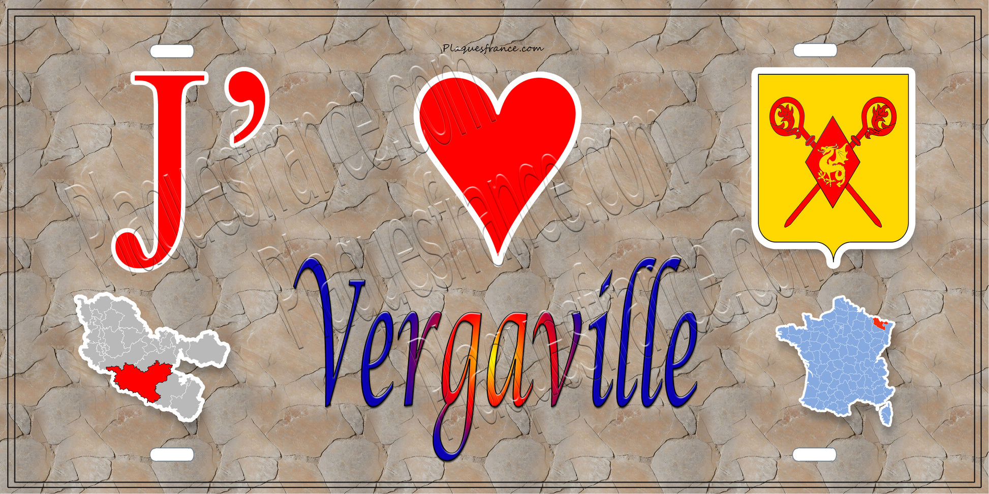 Plaque métal décorative 15 x 30 cm mur antique carte J' ❤️ Vergaville, canton du Saulnois Moselle 57