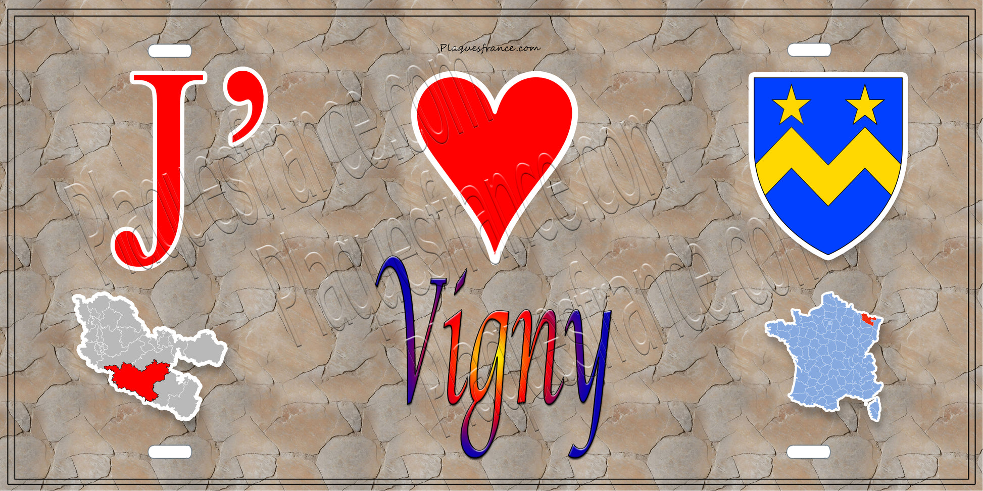 Plaque métal décorative 15 x 30 cm mur antique carte J' ❤️ Vigny, canton du Saulnois Moselle 57