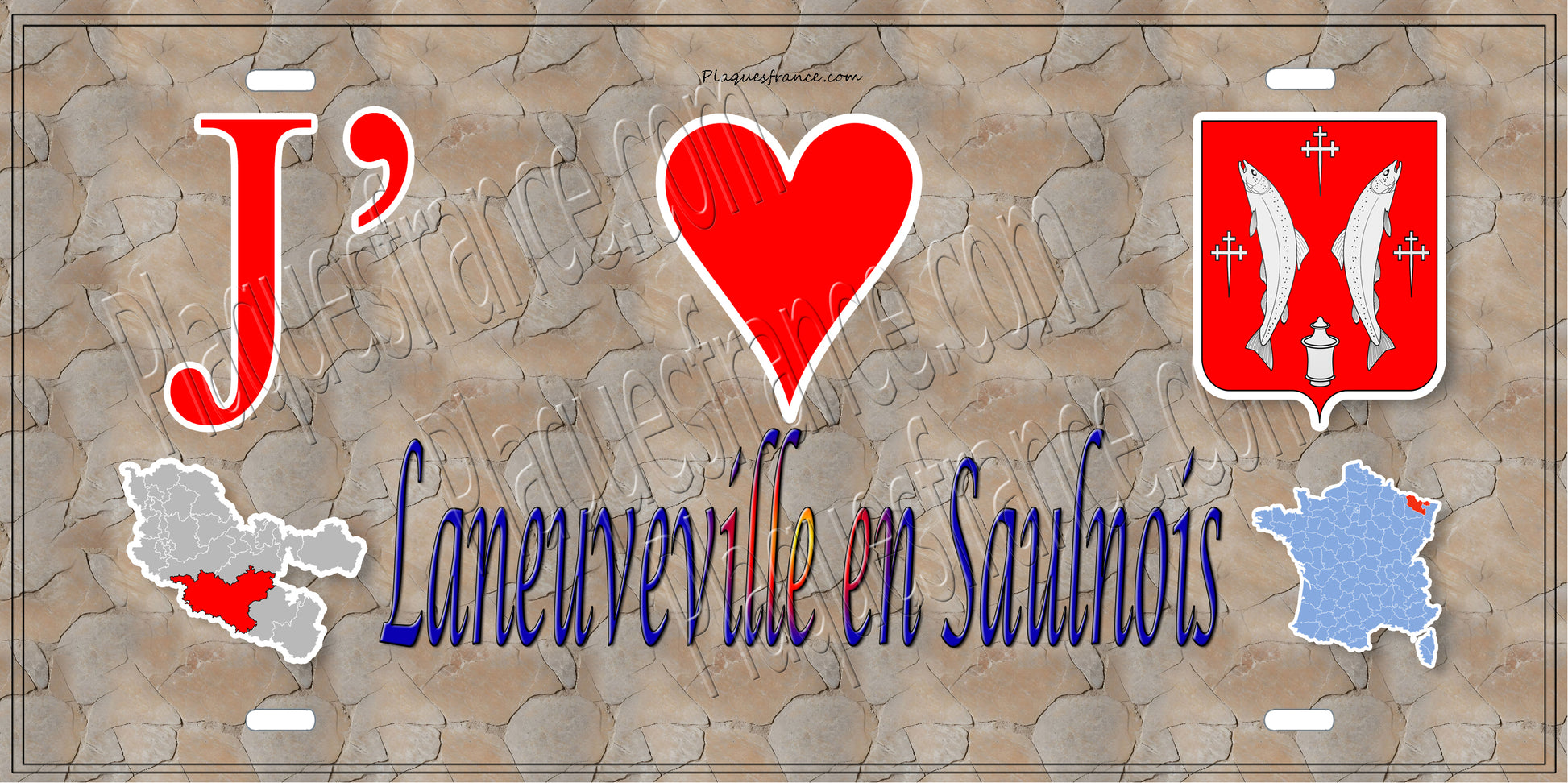 Plaque métal décorative 15 x 30 cm mur antique carte J' ❤️Laneuveville en Saulnois, canton du Saulnois Moselle 57