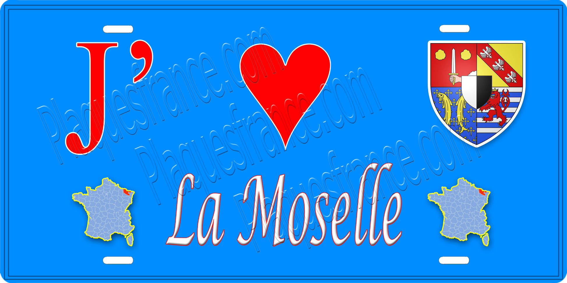 Plaque métal décorative 15x 30 cm fond bleu J'❤️ la Moselle 57