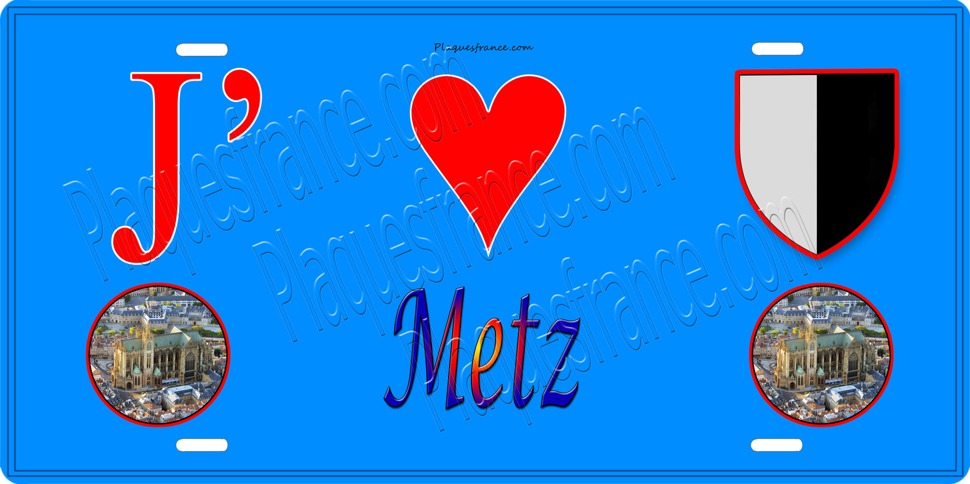 Plaque métal décorative 15x30 cm bleu J' ❤️Metz cathédrale