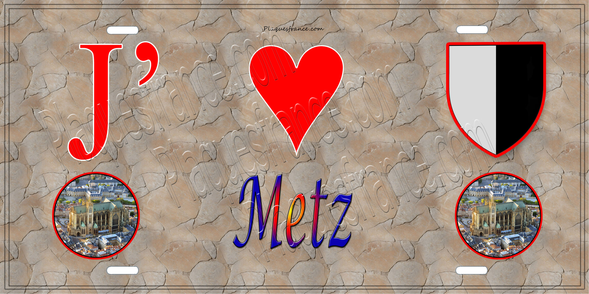 Plaque métal décorative 15x30 cm mur antique J' ❤️Metz cathédrale