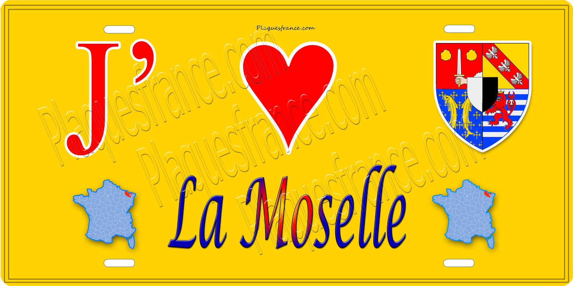 Plaque métal décorative 15x30cm fond jaune J' ❤️la Moselle carte france