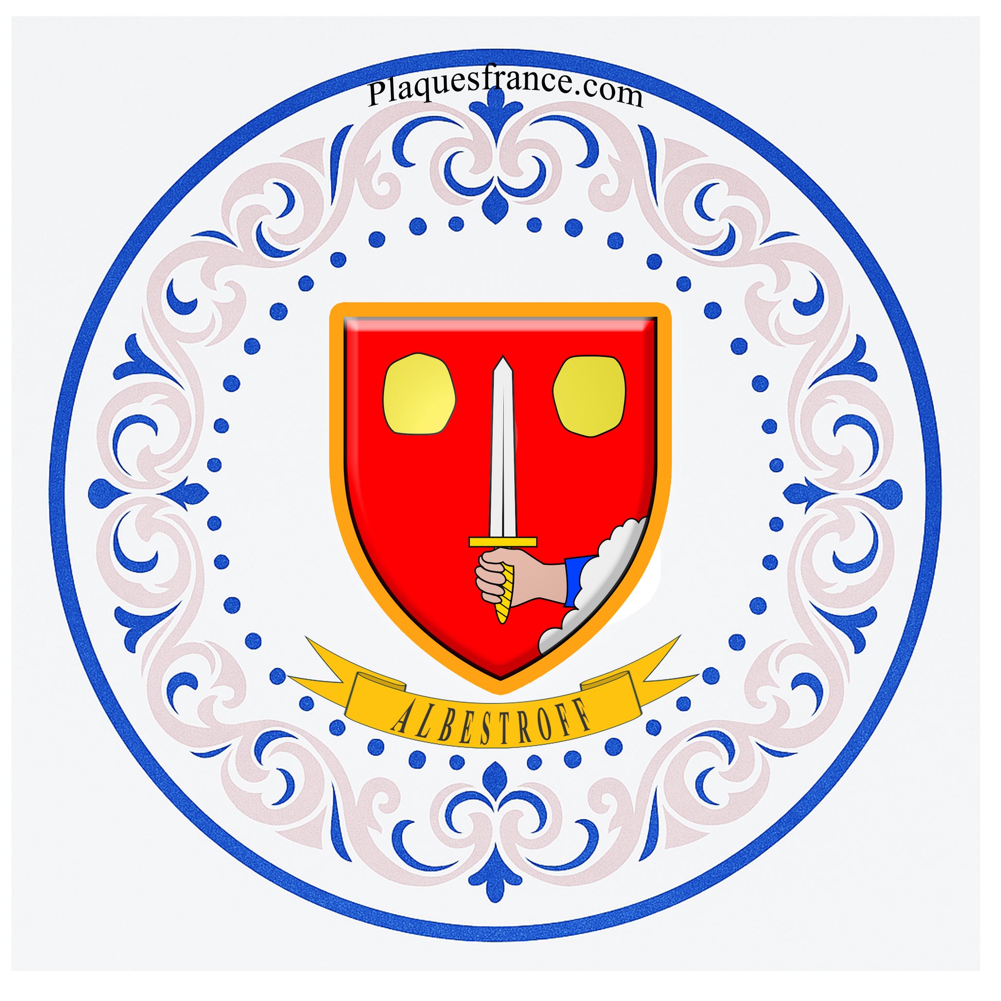 Plaque métal décorative aile lys ronde Ø 30 cm blason Albestroff, canton du Saulnois Moselle 57