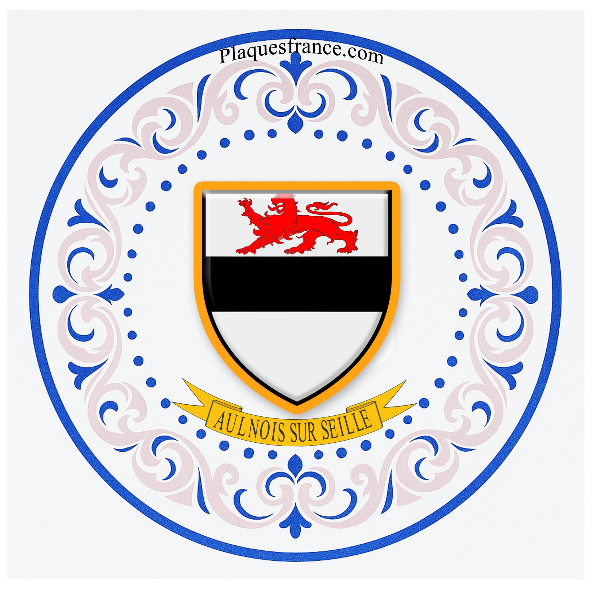 Plaque métal décorative aile lys ronde Ø 30 cm blason Aulnois-sur-Seille, canton du Saulnois Moselle 57
