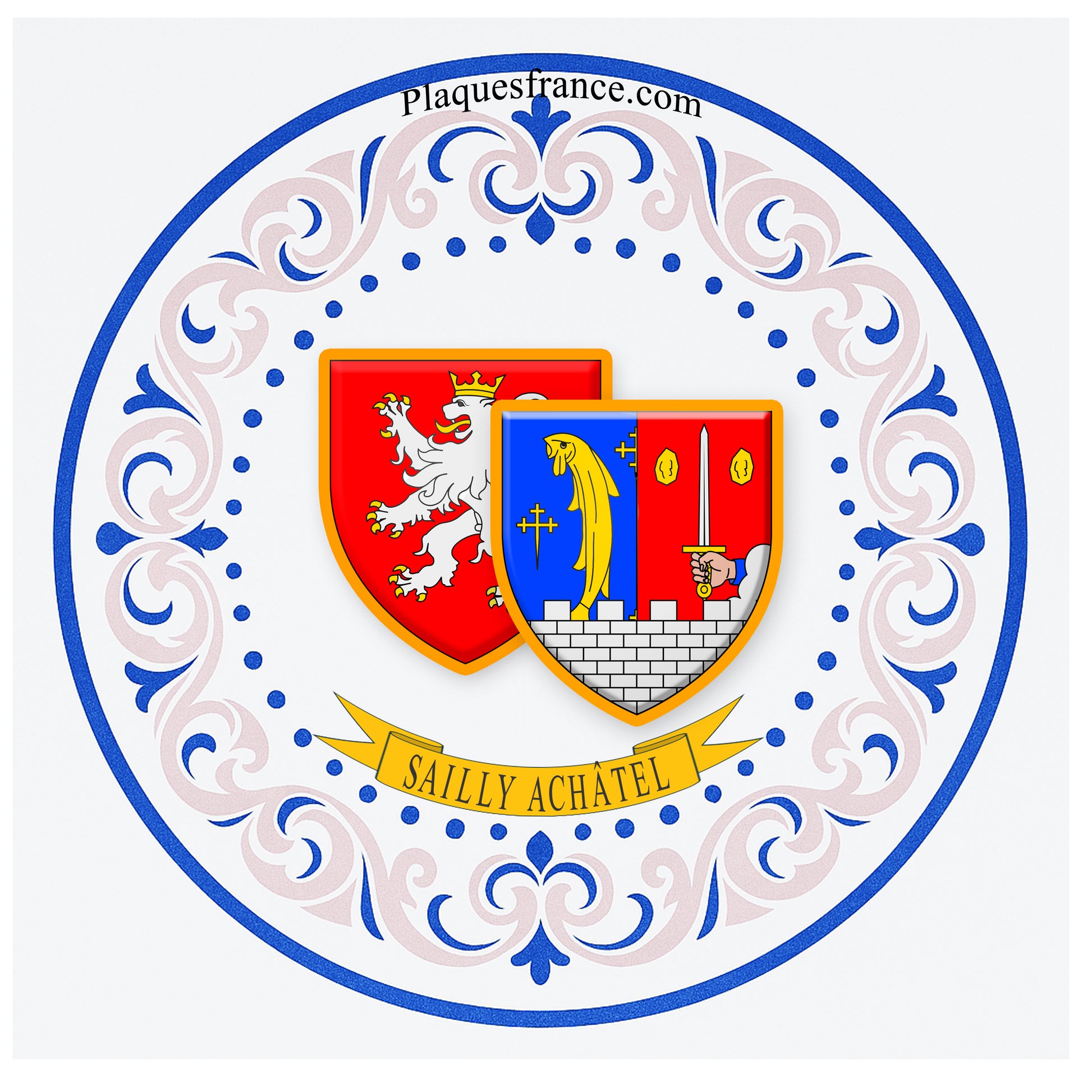 Plaque métal décorative aile lys ronde Ø 30 cm blason Sailly-Achâtel, canton du Saulnois Moselle 57