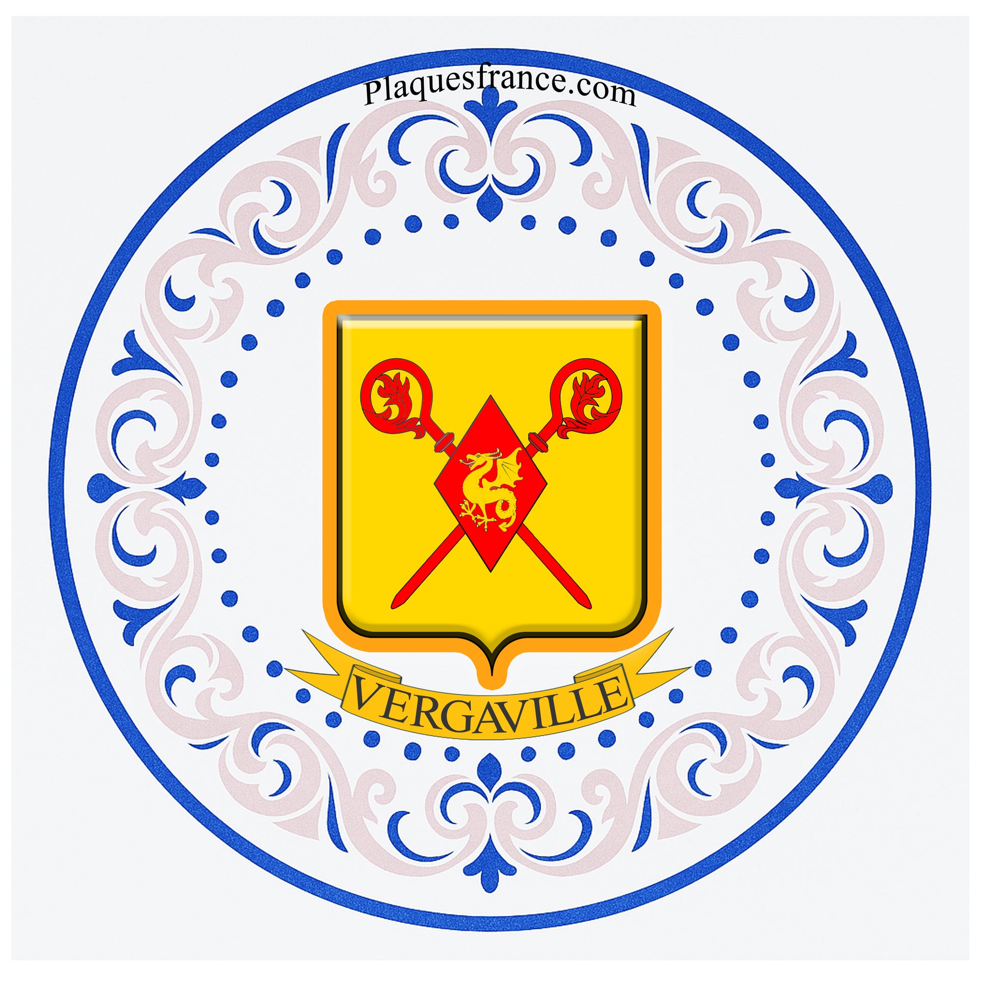 Plaque métal décorative aile lys ronde Ø 30 cm blason Vergaville, canton du Saulnois Moselle 57