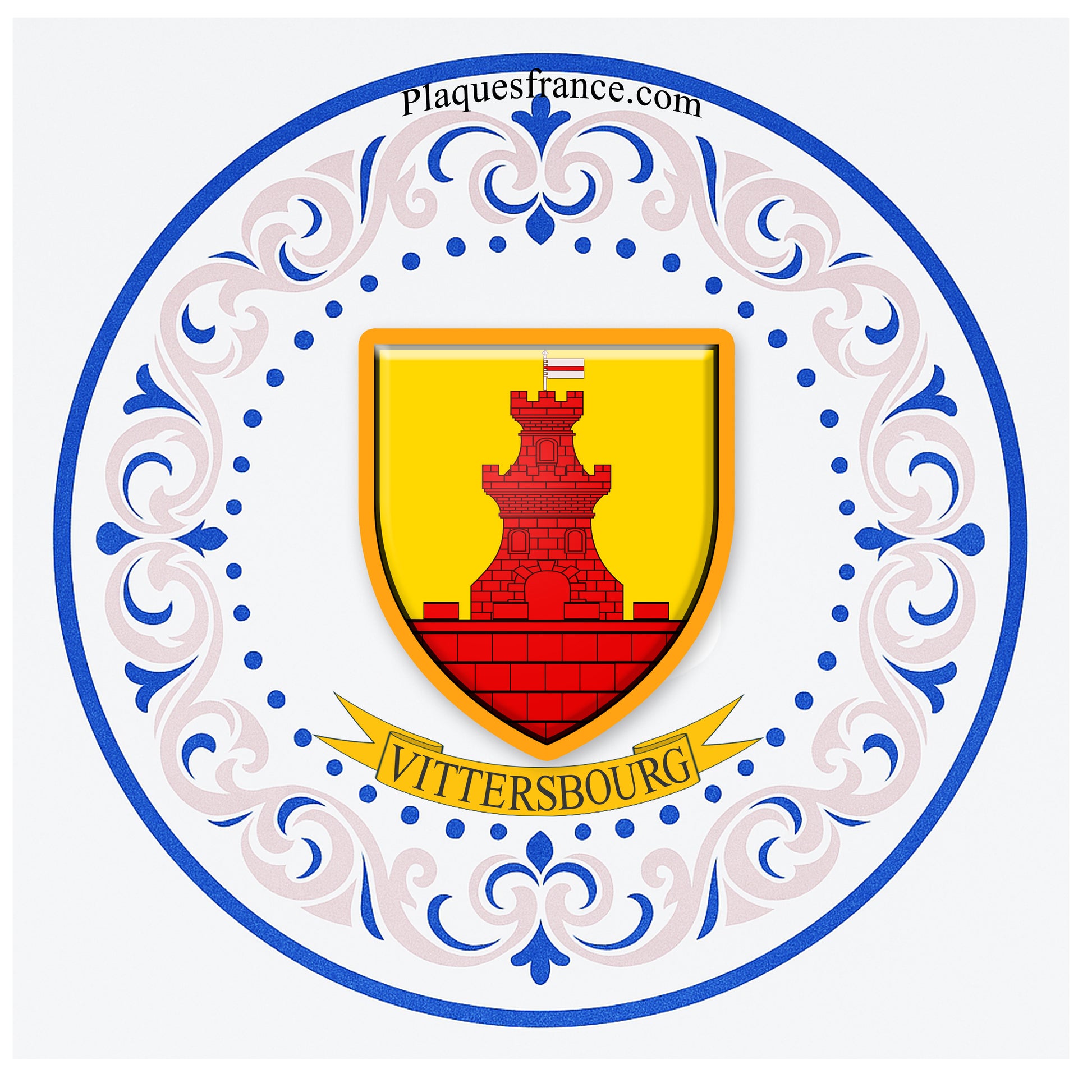 Plaque métal décorative aile lys ronde Ø 30 cm blason Vittersbourg, canton du Saulnois Moselle 57